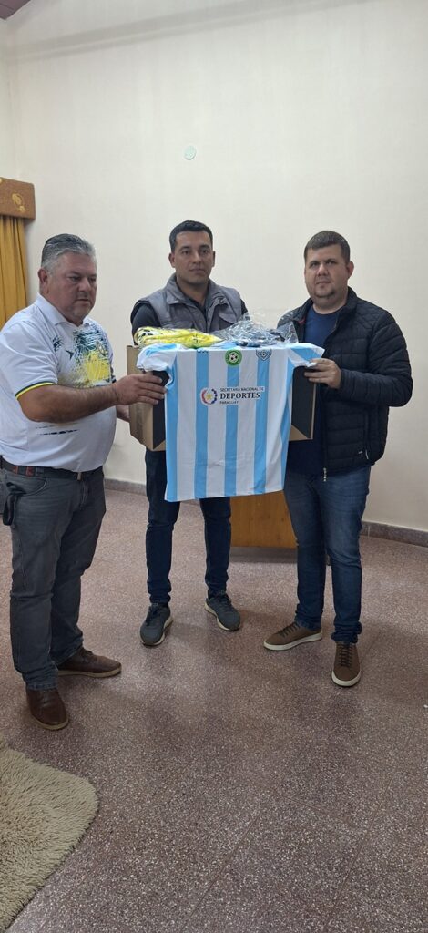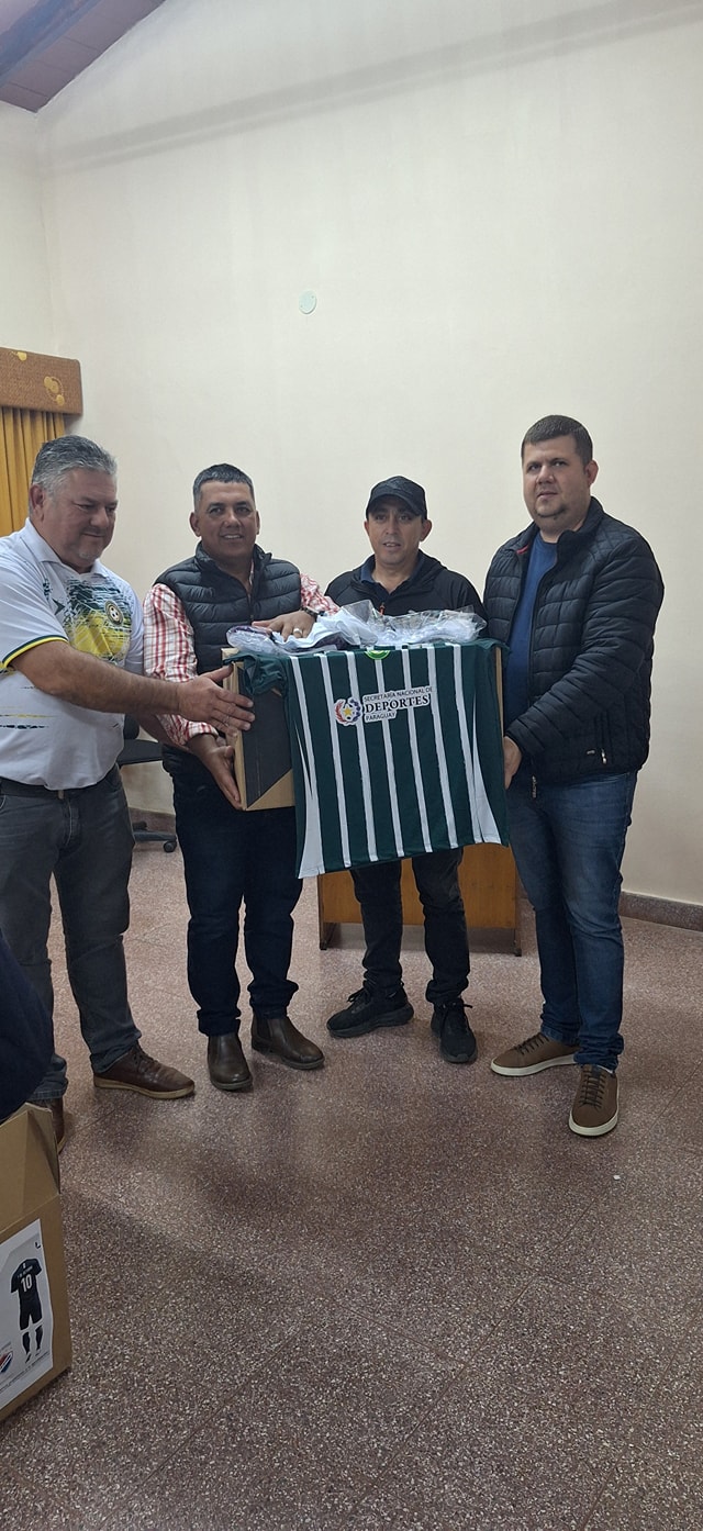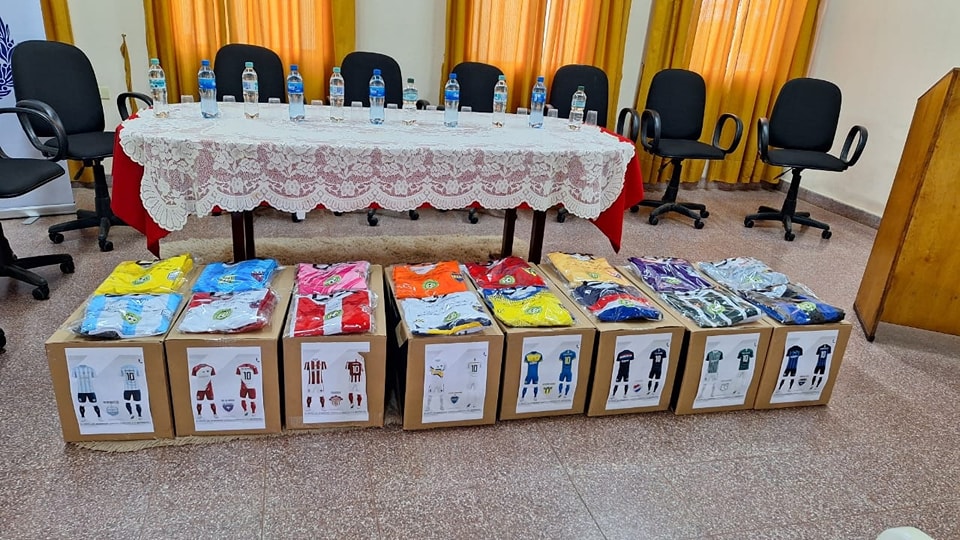 Entrega de Indumentarias Deportivas a los 8 Clubes de la Liga Deportiva Caballerense de Fútbol por parte de la Secretaria Nacional de Deportes, nuestro agradecimiento al Ministro Sr. Cesar Ramirez, y al Ministro del MUHV Ing. Juan Carlos Baruja por las gestiones realizadas.